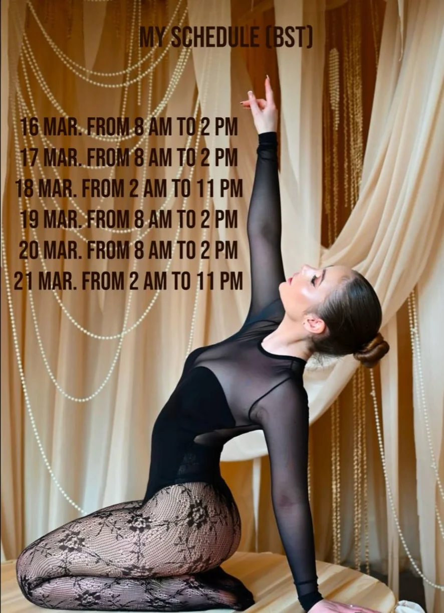 Talons, Fumeurs, Nylon, Masturbation guidée, Upskirting, Évaluation de bites, Fétichisme des pieds, Massage, Jeux de rôles, Humiliation, Footjob, Show huileux